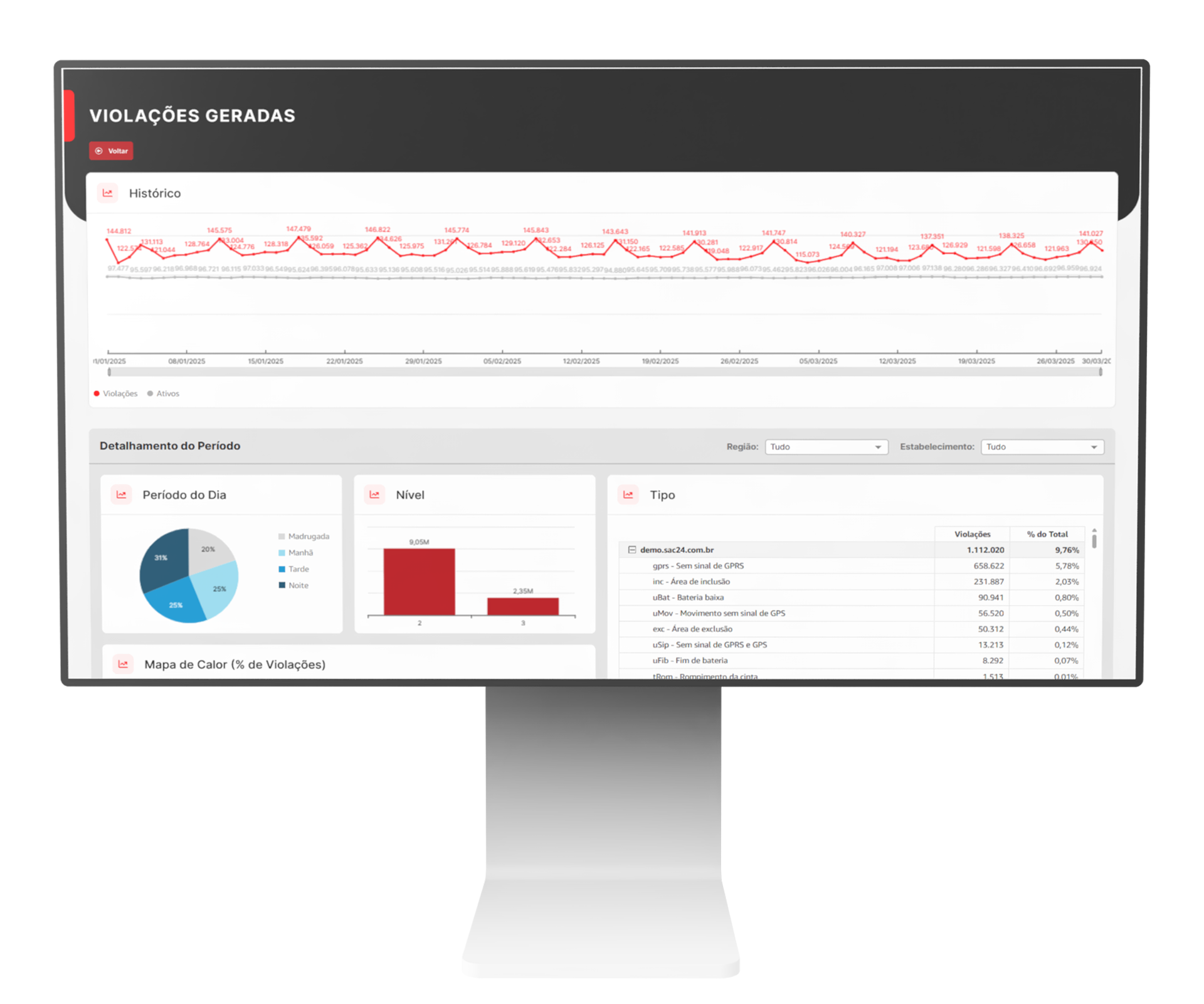 Tenha uma visão geral dos dados consolidados na plataforma SAC24 Sistema web, acompanhando os números gerais da operação de monitoramento, monitorados ativos, inventário, dentre outras informações.